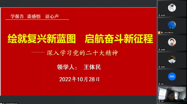 为深入学习贯彻党的二十大精神,10月28日下午,马克思主义学院召开“绘就复兴新蓝图,启航奋斗新征程——深入学习党的二十大精神”专题学习会议。会议由学院副院长耿以侠主持,院长王体民和全体教职工参加会议。