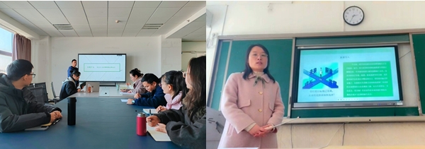 《思想道德与法治》教研室的钟然老师以“社会主义法律的特征和运行”为主题进行 “金微课” 展示。他立足马克思主义法律观,理论结合实际,并辅以生动案例,将宏大理论与现实问题紧密结合,既展现理论深度,又凸显实践温度。曹扬子老师在线展示了她的“金微课”《坚定马克思主义信仰》,她围绕信仰、信念和信心三大板块展开生动讲解。随后,钟然老师和崔前杰老师分享了自己参加教学比赛的心得与体验,从“要区分日常教学和比赛的差异”、“尊重和研读比赛规则”、“及时关注时政热点”、“虚心听取同事意见建议”和“积极调整心态”等几个方面给出了宝贵的建议。随后,全体教师也展开了热烈的讨论,在教学比赛方面,大家明确了参赛目标与分工,力争在比赛中取得优异成绩。