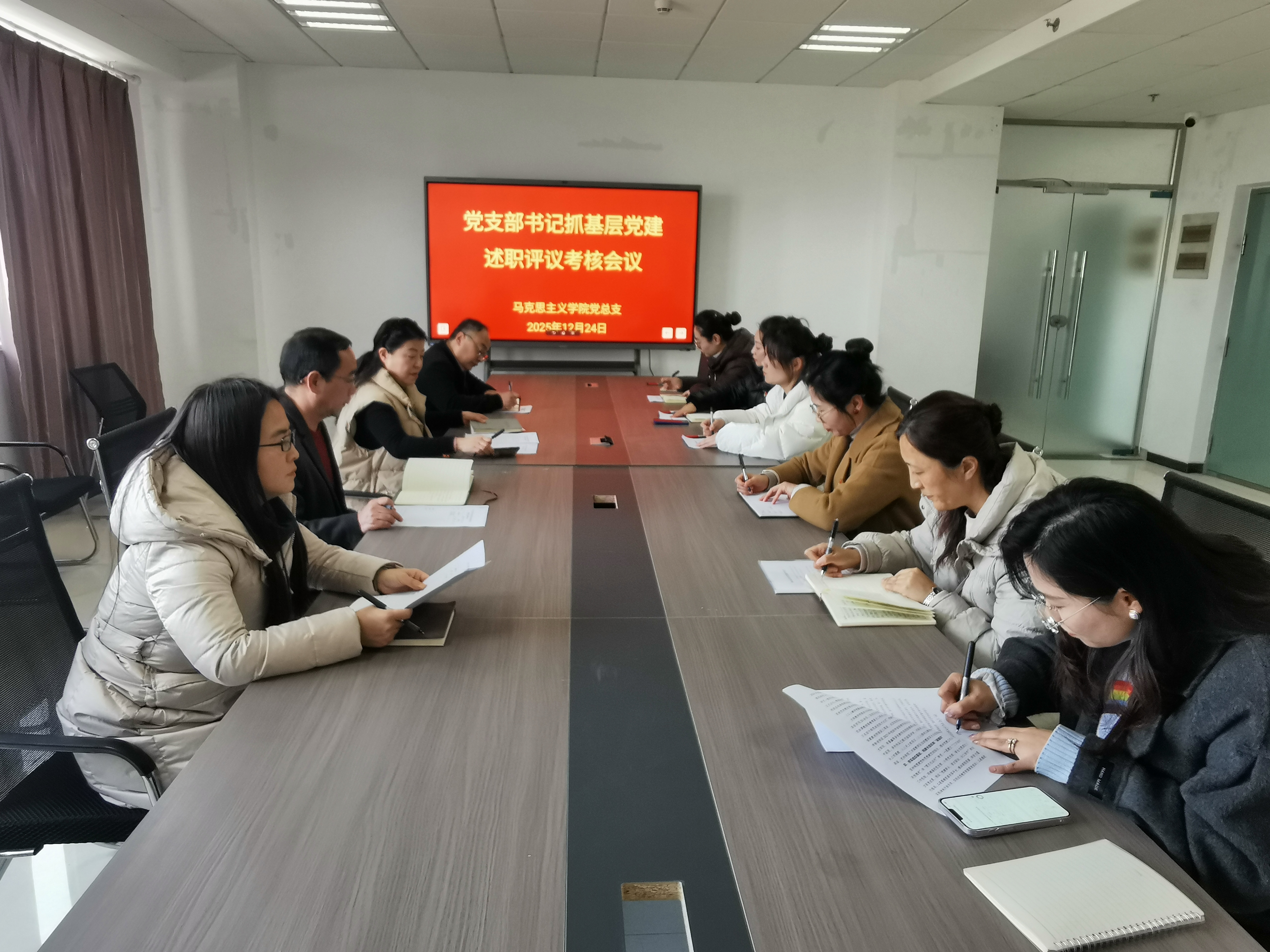 为深入贯彻落实新时代党的建设总要求,压紧压实党支部书记抓基层党建第一责任人职责,12月24日,马克思主义学院党总支组织召开2025年度党支部书记抓基层党建述职评议考核会议。会议由党总支书记薛莲主持,校党政办公室主任黄清站列席,全体党总支委员和支部书记参会。