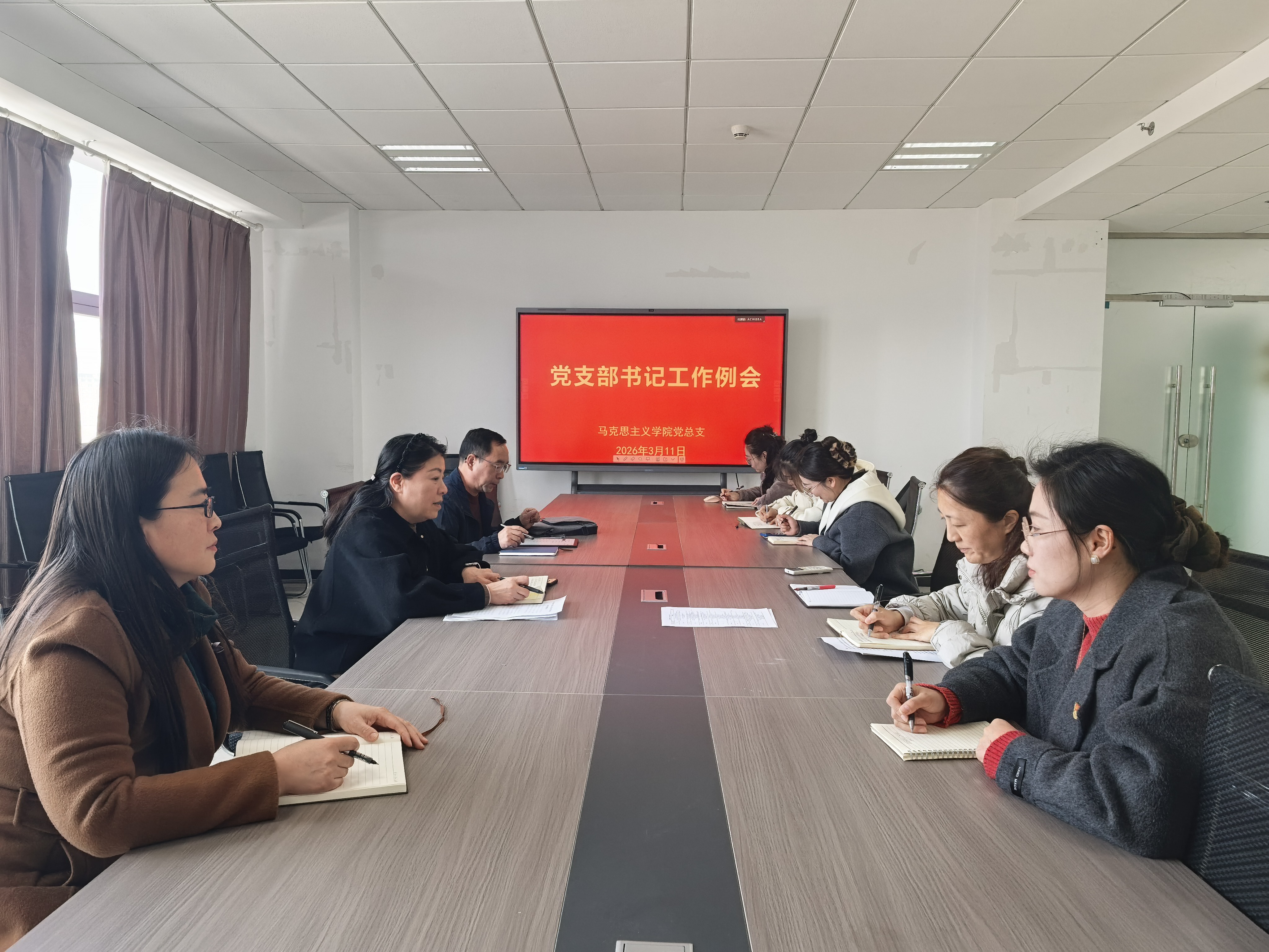 3月11日,马克思主义学院在综合楼822会议室召开党支部书记工作例会,会议主要对2025年度基层党组织组织生活会、民主评议党员工作提出具体要求,对即将开展的学习教育进行动员,同时安排布置2026年度党组织“书记项目”。党总支书记薛莲主持会议、党总支委员及四个党支部书记参加会议。